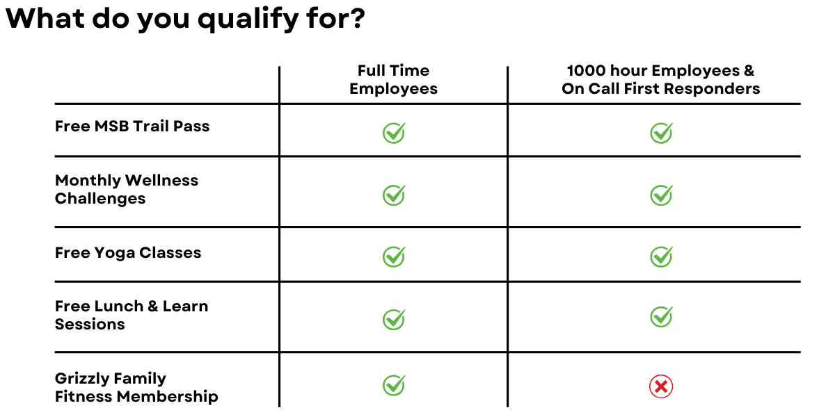 Unfortunately, we cannot offer the Grizzly Family Fitness membership to 1000 hour or On Call First Responders at this time. Because 1,000 hour and on call employees may not work consistent schedules month to month, it can be difficult to accurately apply and report taxable benefits which must be tracked and taxed in real time throughout the year.